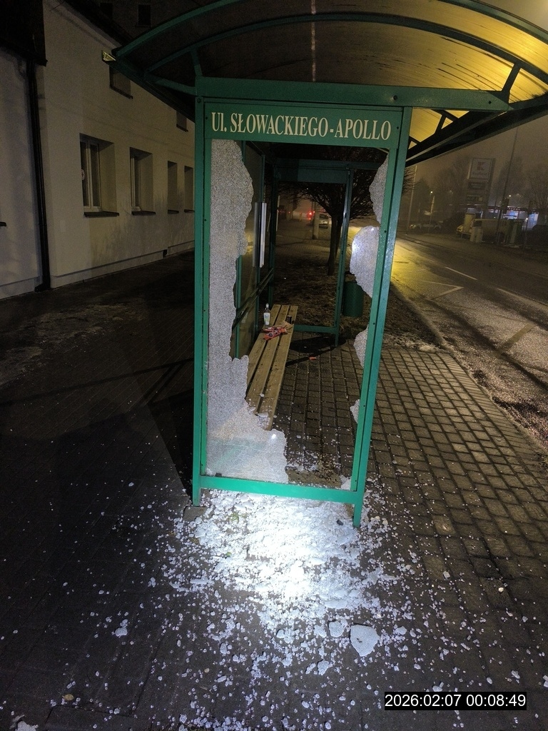 W dniu 6 lutego 2026 r. około godz. 22.15 w Czechowicach-Dziedzicach na ul. Słowackiego funkcjonariusze Straży Miejskiej w Czechowicach-Dziedzicach zatrzymali na gorącym uczynku dewastacji wiaty przystankowej dwóch mężczyzn w wieku 18 lat mieszkańców Czechowic-Dziedzic i Kaniowa, którzy rozbili szklaną szybę tej wiaty. W trakcie przeszukania przy zatrzymanych ujawniono broń gazową w postaci wiatrówki XBG wraz z magazynkiem, w którym znajdowało się 9 sztuk amunicji. Wstępnie straty wyceniono na kwotę około 2 tys. zł na szkodę Urzędu Miejskiego w Czechowicach-Dziedzicach. Z uwagi na agresywne zachowanie zatrzymanych zastosowano wobec nich środki przymusu bezpośredniego w postaci kajdanek, a następnie przekazano funkcjonariuszom Policji.