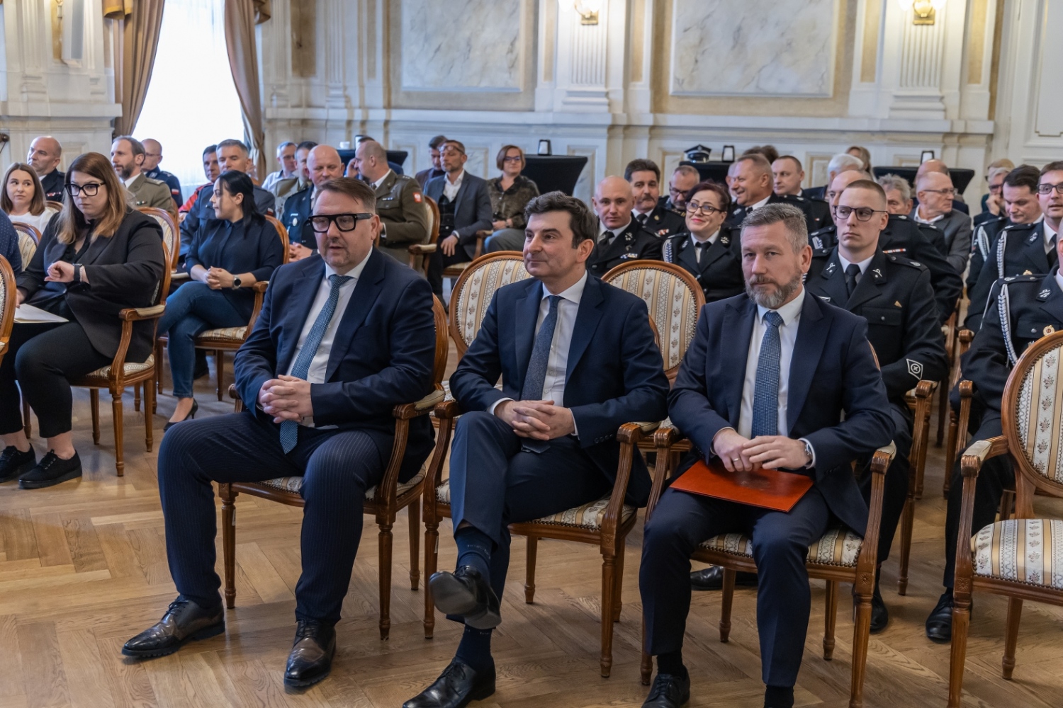 W uroczystości udział wzięli m.in. wojewoda śląski - Marek Wójcik, wicewojewoda - Adam Zaczkowski, radni Sejmiku Województwa Śląskiego Rafał Ryplewicz i Marcin Szarek, przedstawiciele służb mundurowych, organizacji społecznych oraz delegacje Ochotniczych Straży Pożarnych z terenu miasta.